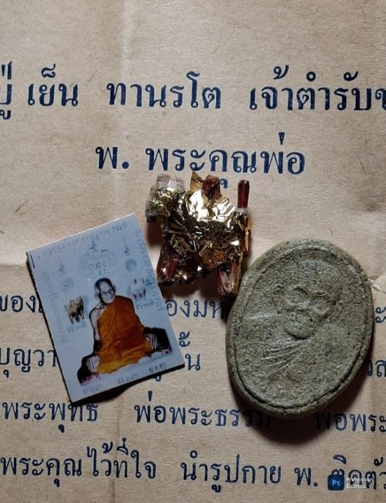 วัดใจ200.-(ตัวพ. พาน มหัศจรรย์ ) หลวงปู่เย็น วัดสระเปรียญ พร้อมรูปถ่าย ,พระเนื้อผง และใบฝอยเดิมๆจากวัด รายงานตามภาพ รับประกันตามกฏ