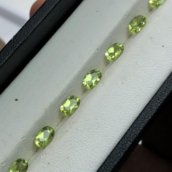 พลอยเพอริดอท พม่า พลอยดิบ ไม่ผ่านการปรับปรุงคุณภาพ 14 เม็ด น้ำหนักรวม 6.94 กะรัต |