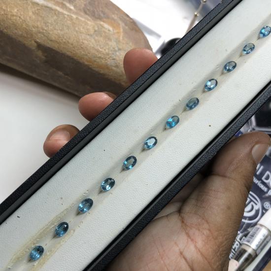 พลอยลอนดอนบลูโทแพส 12 เม็ด น้ำหนักรวม 6.41 กะรัต |