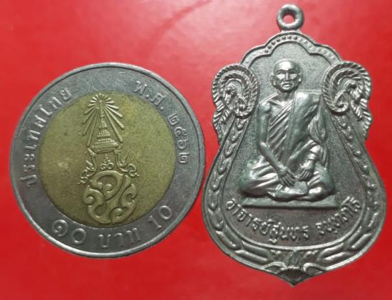 เหรียญหลวงพ่อสุนทร วัดหนองสะเดา สระบุรี ปี 23 กะไหล่เงิน เคาะเดียวแดง