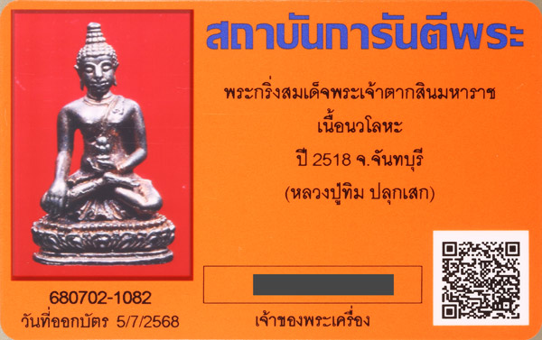 พระกริ่งสมเด็จพระเจ้าตากสิน เนื้อนวโลหะ ปี2518 (ลป.ทิมปลุกเสกเดี่ยว) สภาพสวยเดิมคากล่องครับ