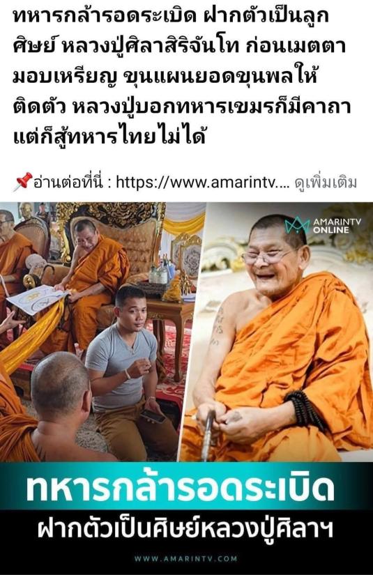 หลวงปู่ศิลา ขุนแผนยอดขุนพล รุ่นรวยโกฏิล้าน เนื้อว่าน+ผงเกษร มวลสาร หลวงปู่มหาศิลา แจกให้ทหาร ไม่แกะซีลลุ้นเลขสวย |