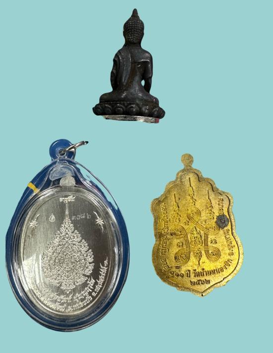 หลวงพ่อพัฒเนื้อเงินลงยาแดง + เสมาหลวงปู่แสน + พระกริ่งหลวงปู่ แสง
