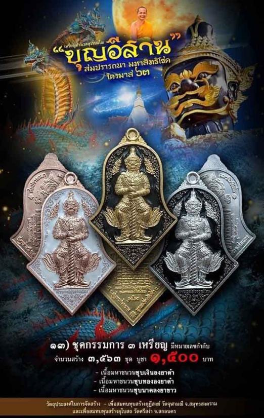 เหรียญท้าวเวสสุวรรณทรงจำปี "บุญอีสาน" หลวงพ่ออิฏฐ์ วัดจุฬามณี ชุดกรรมการ 3 เหรียญ ซีลเดิม ลุ้นเลขสวยครับ (A-1) |