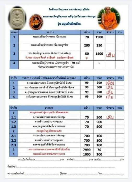 สายหลวงพ่อฤาษีฯ พระสมเด็จอุปัจเทยยะ นำฤกษ์ ฝังตะกรุด 3 กษัตริย์ หลวงพ่อหนุน สุวิชโย รุ่นหนุนเงินล้านล้าน ปิดทองคำเปลวในพิมพ์วัดพุทธโมกพลาราม เนื้อผงก้นครกกับลูกอม รวม 3 รายการเคาะเดียวเบาๆครับ |