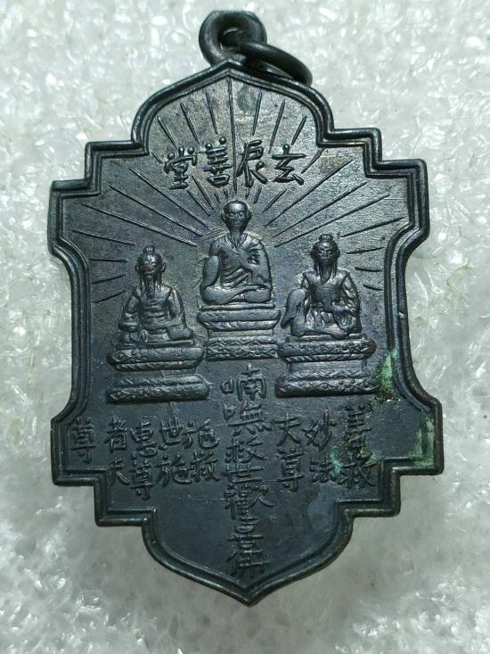 เหรียญสามเซียนมูลนิธิการกุศลสงเคราะห์ ปี2497 ออกวัดญวน สะพานขาว กทม. เนื้อทองแดงรมดำ หลวงพ่อบ๋าวเอิง หลวงพ่อโอภาสี อธิษฐานจิต |