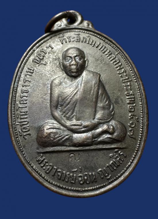 เหรียญหลวงปู่อ่อน ญาณสิริ รุ่นแรก ปี17 หลังยันต์นกคุ้ม เนื้อทองแดง ตอกโค๊ต (ลป.ขาว วัดถ้ำกลองเพล ลป.ฝั้น อาจาโร หลวงปู่เทสก์ อจ.วัน ฯลฯ ร่วมปลุกเสก) |