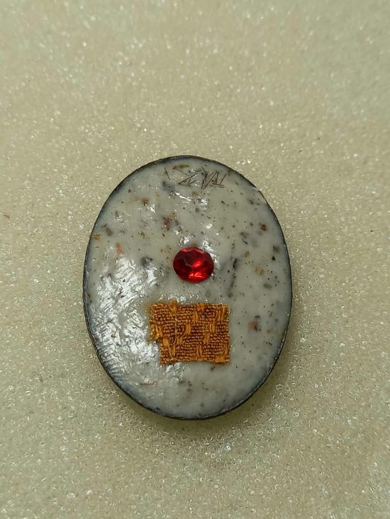 ด้านหลังอุดผงพุทธคุณ ติดเกศา จีวร พลอยเสก