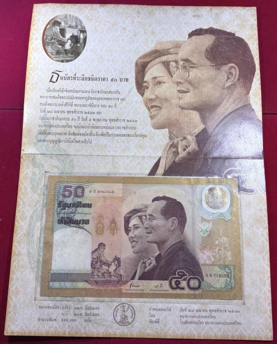 ธนบัตร 50ปี ราชาภิเษกสมรส พร้อมปก จำนวน 1 ใบสภาพสวยตามรูป