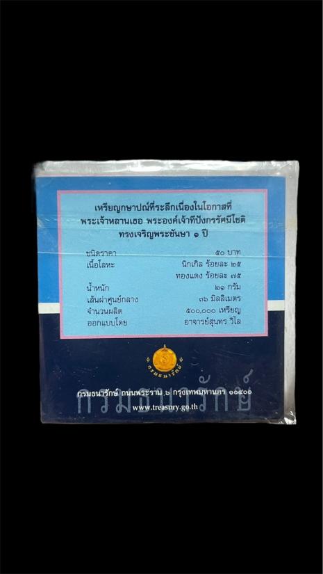 เหรียญกษาปณ์ที่ระลึก ชนิด 50 บาท เนื้อคิวโปรนิกเกิล พระเจ้าหลานเธอ พระองค์เจ้าทีปังกรรัศมีโชติ ทรงเจริญพระชันษา 1 ปี |