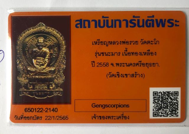 เหรียญนั่งพานชนะมาร หลวงพ่อรวย วัดตะโก ปี2558 เนื้อทองเหลือง สภาพเดิมๆ ตอกโค๊ตชัด พร้อมบัตรการันตรี |