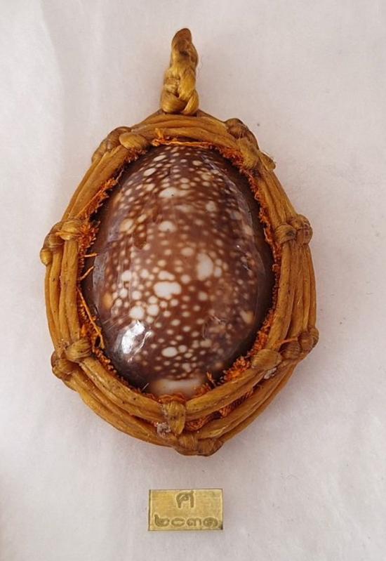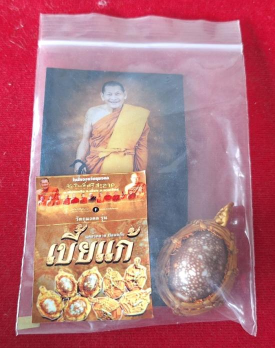 เบี้ยแก้ หุ้มจีวร ถักเชือก หลวงปู่ศิลา วัดโพธิ์ศรีสะอาด มีแผ่นเลขกำกับ ฝังตะกรุดทองเหลือง พร้อมใบคาถา ปี2567 |