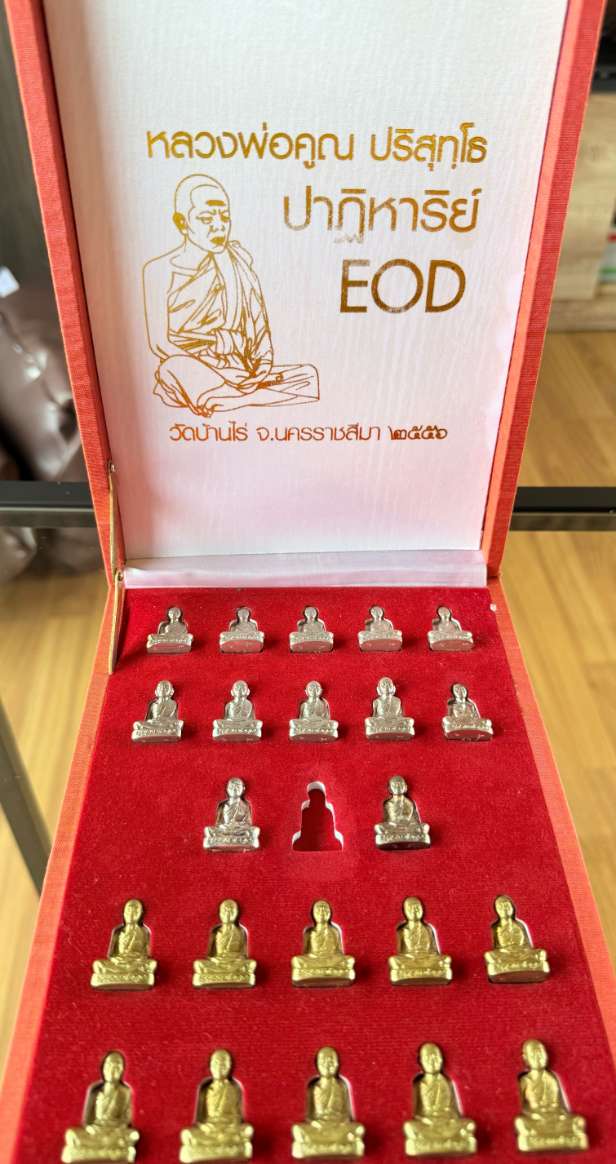 หลวงพ่อคูณ รุ่นปาฏิหาริย์ EOD ชุดกรรมการ วัดบ้านไร่ จ.นครราชสีมา ปี 2556 พุทธศิลป์ (ทั้งหมด 22 องค์ ชุดกรรมการ ไม่มีเนื้อ ทองคำ ) |