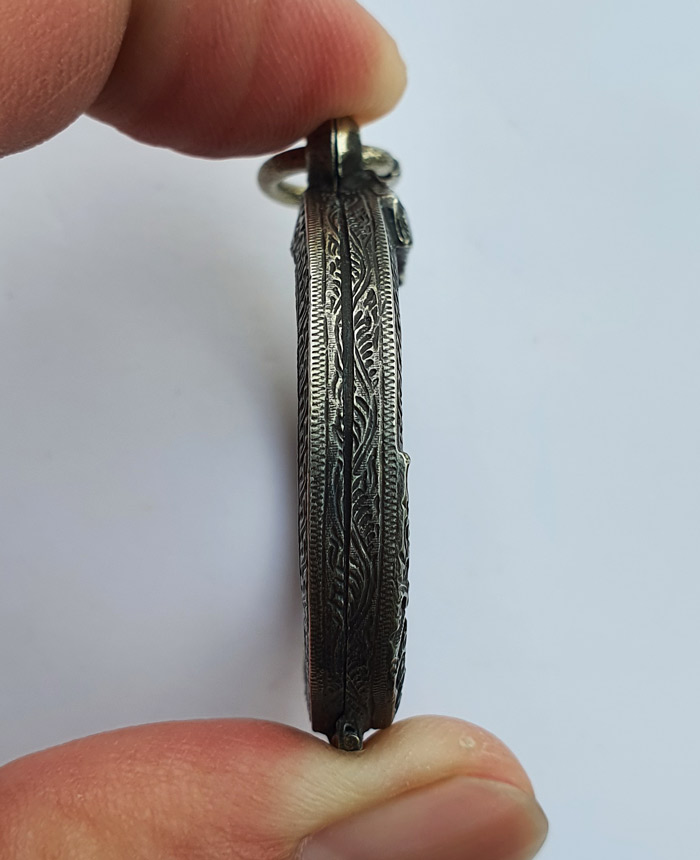 **วัดใจ** ตลับเงินยกซุ้มเก่ามือสองสภาพดี ใส่เหรียญกลมเล็ก ล้อแม็กเล็กหลวงปู่โต๊ะ และเกจิอื่นๆขนาดใกล้เคียง ขนาดกรอบใน 2.7x2.7 ซม. สวยสมบูรณ์ เป็นงานเงิน 85% ครับ |
