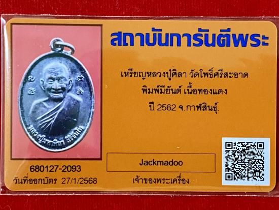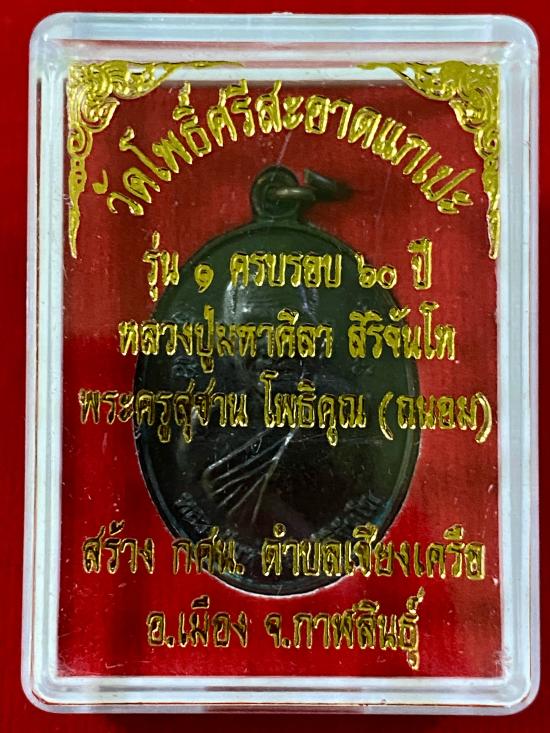 เหรียญรุ่น1ครบรอบ 60 ปี หลวงปู่มหาศิลา สิริจันโท หลังพระครูสุชาน โพธิคุณ (ถนอม) ปี 2562 มียันต์ เนื้อทองแดง พร้อมบัตรการันตีพระ และกล่องเดิม ขออนุญาตใช้ชื่อตามกล่องและองค์พระครับ หลวงปู่ศิลา |