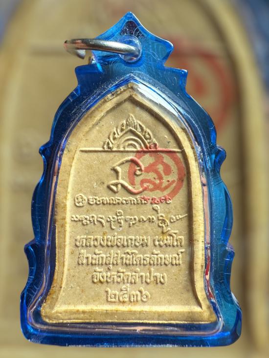 พระผงที่ระลึกนะหน้าทองฝังตะกรุดเงิน หลวงพ่อเกษม เขมโก สุสานไตรลักษณ์ จ.ลำปาง ปี 2536 |