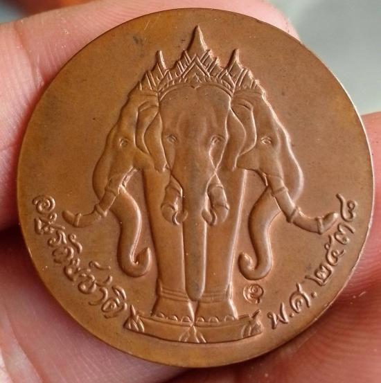 เหรียญ ร.5 หลังช้างสามเศียร หลวงพ่อคูณปลุกเสก รุ่นอนุรักษ์ชาติ ปี.2538 เนื้อทองแดง |