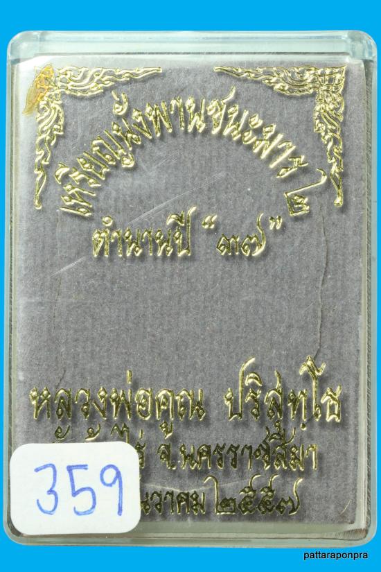 เหรียญนั่งพาน หลวงพ่อคูณ รุ่นชนะมาร๒ ปี 2557 เนื้อทองแดงมันปู หน้ากากทองฝาบาตร หมายเลข 359 |