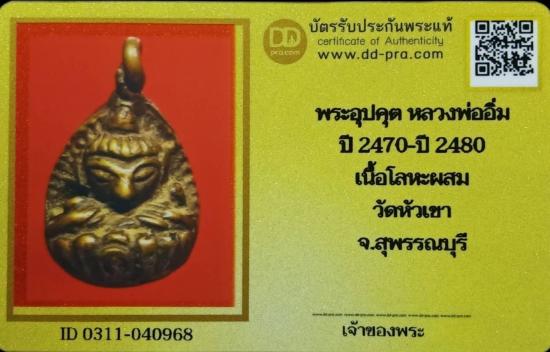 *_*วัดใจ 100-.+บัตรรับรอง*_*พระอุปคุต หลังยันต์ เนื้อโลหะผสม หลวงพ่ออิ่ม วัดหัวเขา จ.สุพรรณบุรี พ.ศ.2470-22480 สวยๆ พร้อมบัตรรับรองครับ