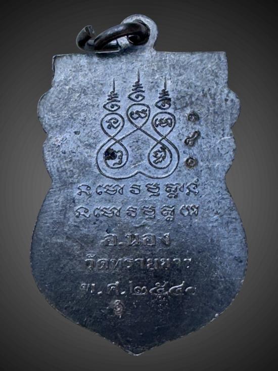 เหรียญเสมาหัวโตหลวงปู่ทวด อาจารย์นอง ปี 2540 เนื้อทองแดงรมดำ No.340 วัดทรายขาว จ.ปัตตานี