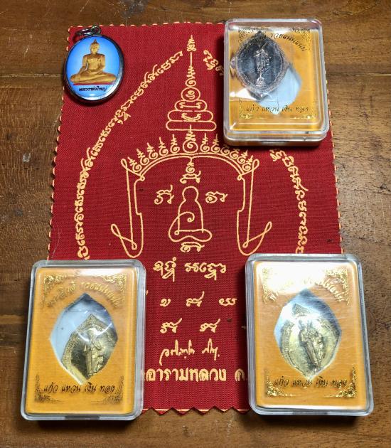 วัดใจครับ 5 องค์ ผ้ายันต์มงกุฎ+เหรียญพระสีวลี เนื้อสัตตะ 2 เนื้อทองแดง 1+ ล็อคเก็ต หลวงพ่อขาว หลวงพ่อพระมหาสุรศักดิ์ วัดประดู่พระอารามหลวงครับ |