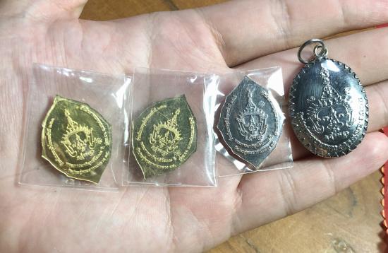 5 องค์ ผ้ายันต์มงกุฎ+เหรียญพระสีวลี เนื้อสัตตะ 2 เนื้อทองแดง 1+ ล็อคเก็ต