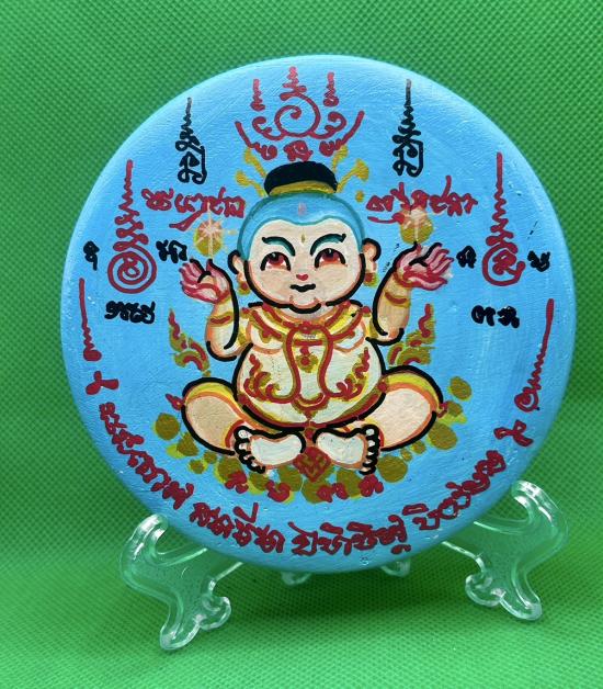 ตัวแผ่นเป็นเนื้อผง ลงสีวาดรูปกุมาร ขนาด เส้นผ่าศูนย์กลาง 4 นิ้วครับ
