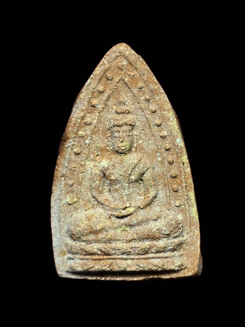 พระพุทโธข้างเม็ด หลังยันต์บ้าน หลวงปู่เฮี้ยง วัดป่า จ.ชลบุรี ปี 2499 เนื้อผง |