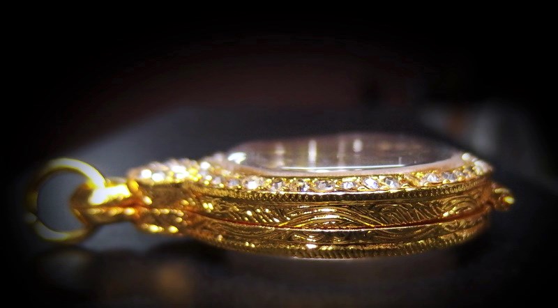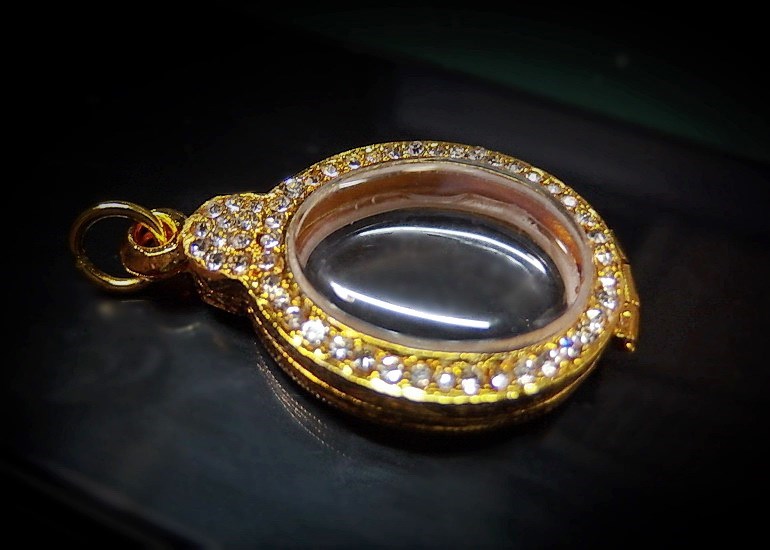 ตลับเงินชุบทองใส่เหรียญรูปไข่เพชรล้อมขนาดตามภาพถ่ายเคาะเดียวครับ |