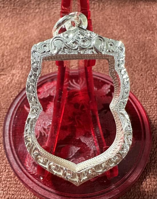 กรอบเงินแกะลาย [ทรงเสมา] เงิน95% |