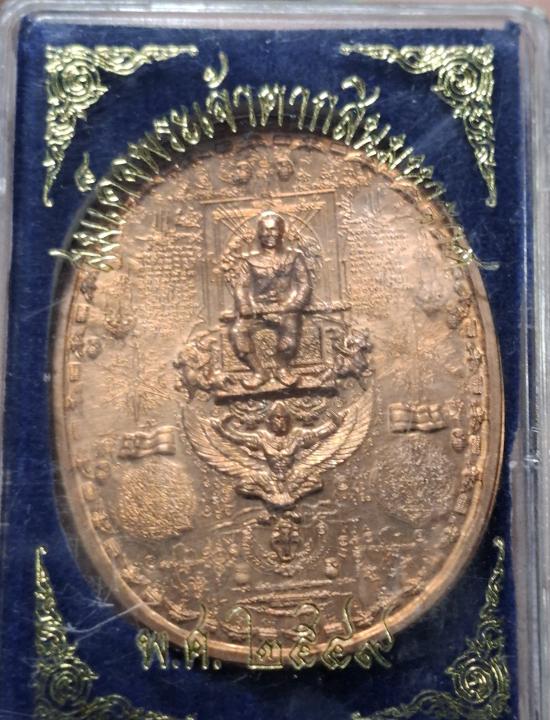 เหรียญระเบิดมหายันต์ อ.หม่อม นิรนาม พิมพ์ สมเด็จพระเจ้าตากสิน นั่งบัลลังก์ ทรงครุฑ มีกล่อง |