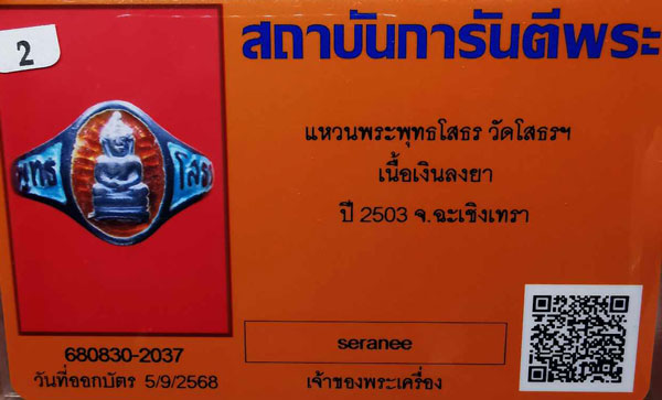 แหวนพระพุทธโสธร วัดโสธรฯ เนื้อเงินลงยา ปี2503 จ.ฉะเชิงเทรา + บัตรG-pra สภาพสวยเดิมค่ะ |