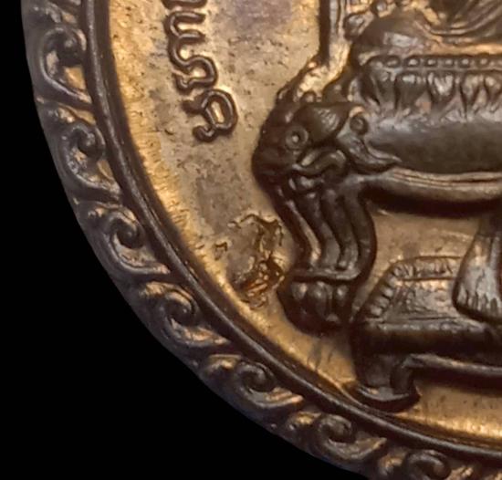เปิดวัดใจ เหรียญนั่งธรรมมาสน์ รุ่น 60 พรรษามหาราชินี เนื้อทองแดง จมูกโด่งๆ ปี 35 ตอกโค๊ดกำกับด้านหน้าขวา |