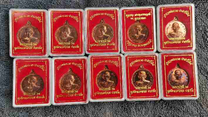 10 องค์ เหรียญเมตตาบารมี ๖๓ ลพ รวย จัดสร้างโดยมุลนิธิหลวงพ่อรวย ปาสาทิโก เนื้อทองแดง