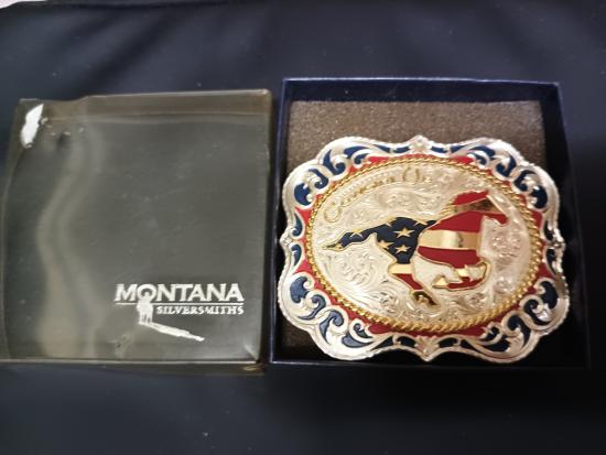 วัดใจเคาะแรก หัวเข็มขัด (ตัวสะสม) Silversmiths Stars n' Stripes 'Cowgirl Up' Belt Buckle สั่งเข้าจากอเมริกาของใหม่