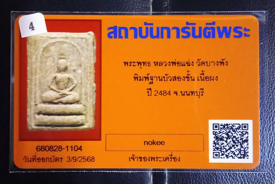 "พระพุทธ หลวงพ่อแฉ่ง วัดบางพัง เนื้อผง ปี 2484 จ.นนทบุรี+บัตรรับรองการันตีพระ(สภาพสวยไม่ผ่านการใช้)" |