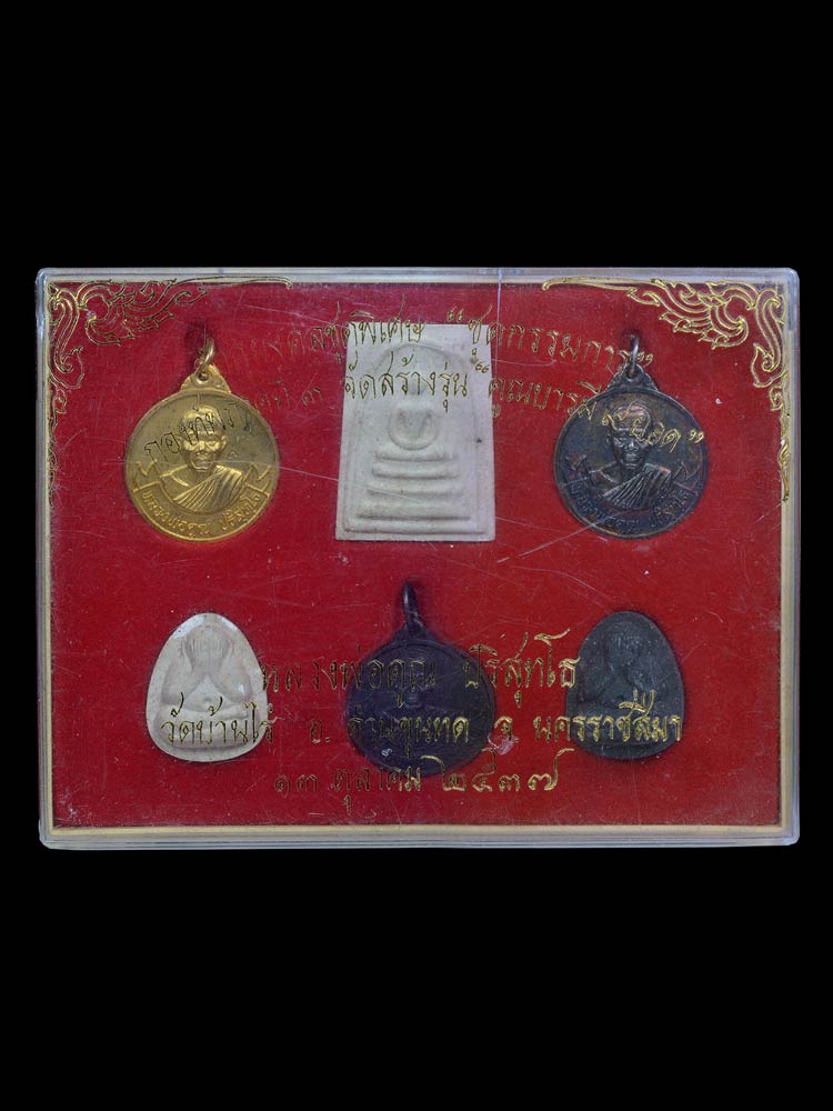วัตถุมงคลชุดพิเศษ ( ชุดกรรมการ 6 รายการ เหรียญ , สมเด็จ , พร ะปิดตา ) รุ่น คูณบารมี 9 ยอด กองทัพภาคที่ 3 จัดสร้าง พ.ศ.25 37 ( กล่องเดิม )