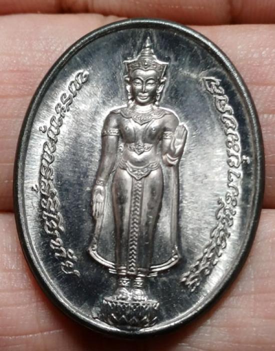 เหรียญพระพุทธสุริโยทัย สิริกิติทีฆายุมงคล หลัง สก. "เนื้อเงิน" ในพระราชพิธีสมโภชพระเจดีย์ศรีสุริโยทัย ปี 2534 สภาพสวย (ไม่มีกล่อง)
