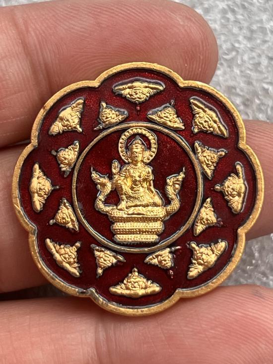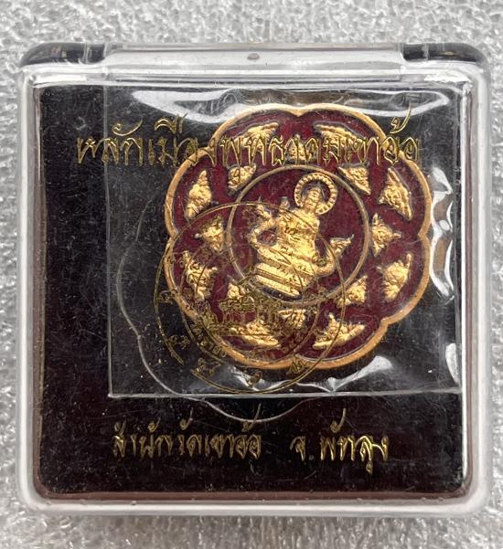 เหรียญกะไหลทองลงยาแดง องค์พ่อจตุคามรามเทพ พุทธาคมเขาอ้อ พัทลุง ปี2549 สวยเดิมๆ
