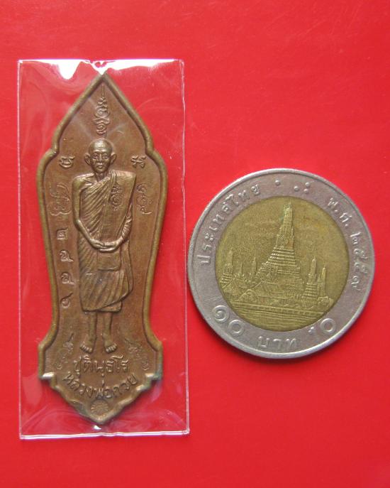 เหรียญยืนหลวงพ่อกวย ออกวัดซับลำใย เนื้อทองแดง |