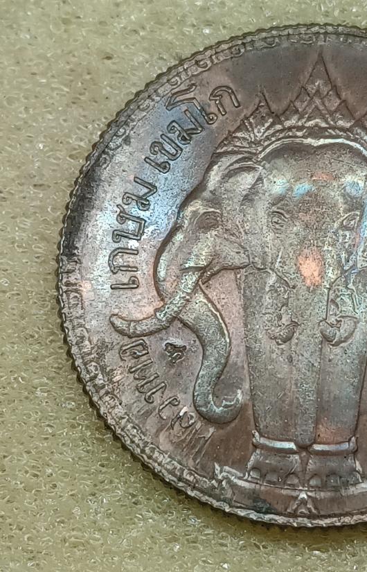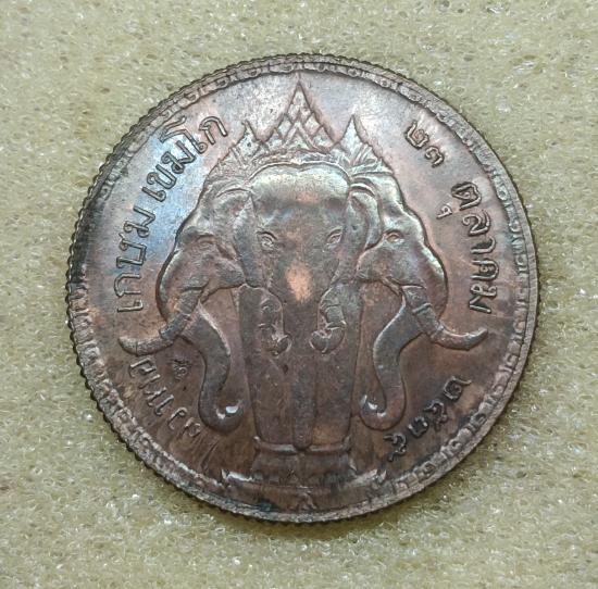 เหรียญร 5 หลังช้างสามเศียร หลวงพ่อเกษม ปี 35 เนื้อทองแดง มีโค้ด |