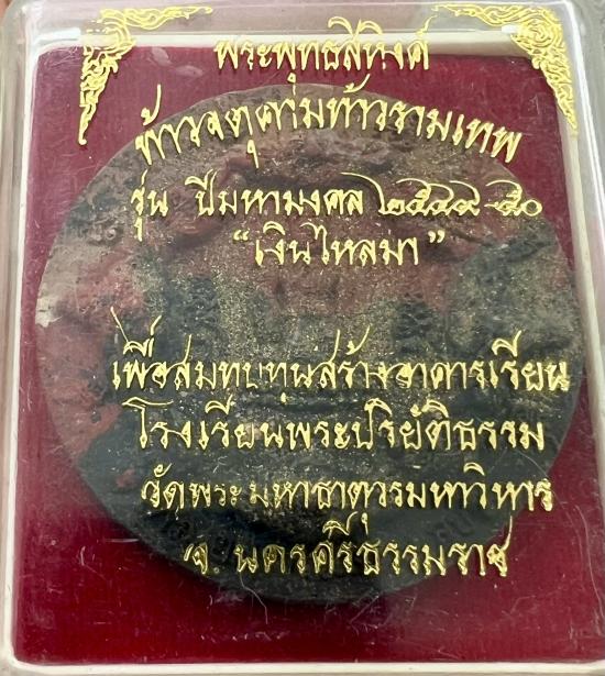 องค์พ่อ รุ่นเงินไหลมา1 พิมพ์ใหญ่ เนื้อก้นครกโรย ผงตะไบ พร้อมกล่องเดิม (ขนาด 5 ซม.) |