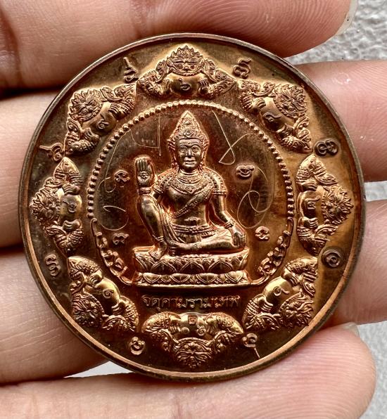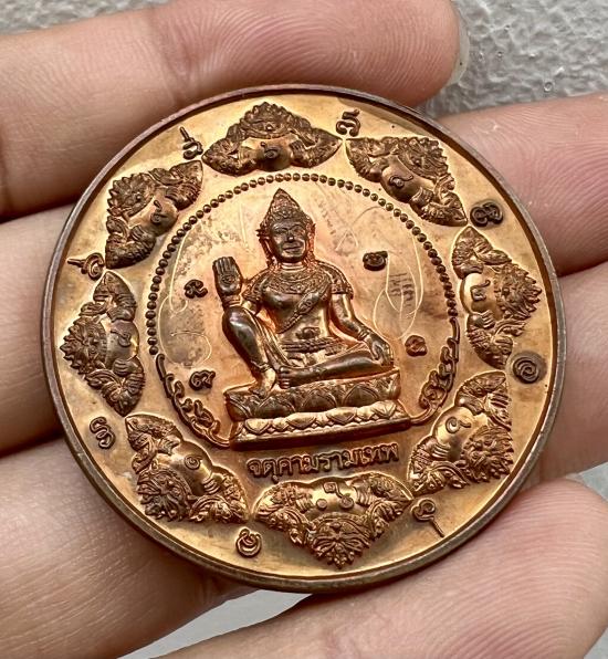 เหรียญองค์พ่อจตุคามรามเทพ รุ่น หลักชัย หลวงพ่อโชติ วัดพุทไธศวรรย์ ปี 2549 เนื้อทองแดง ขนาด 4 ซม. มีรอยจารย์พระอาจารย์ หายากมากๆๆเหรียญสวยๆๆ |