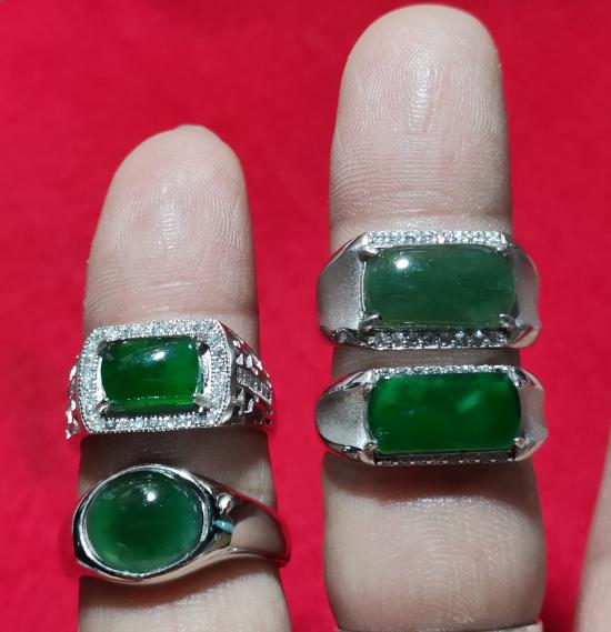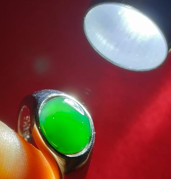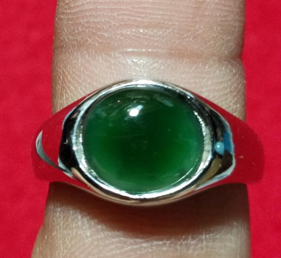 แหวนหยกเขียวจักพรรดิ์ naturial jadite type a ตัวเรือนเงิน s925 ฟรีไซร์