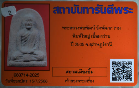 พระรูปเหมือนพิมพ์เล็บมือใหญ่ หลวงพ่อพัฒน์ วัดใหม่พัฒนาราม สุราษฎร์ธานี ปี ๒๕๐๕ ...เนื้อผงผสมว่านหลังโรยแร่... พิมพ์ใหญ่