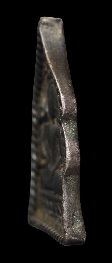พระพุทธชินราช หลวงพ่อโม วัดสามจีนจัดสร้างราวปี พ.ศ.2460 เนื้อตะกั่วเก่าคล้ายกับพระเครื่องของหลวงปู่ศุข ด้านหลังมีรอยจารแต่ถูกใช้สึกพอเห็นรางๆวัตถุมงคลของหลวงพ่อโม วัดสามจีน ล้วนมีพุทธคุณเป็นเลิศทุกด้าน โดยเฉพาะคงกระพันชาตรี องค์นี้จับขอบเงินโบราณคลาสสิคมาก สภาพใช้มาแต่ยังถือว่าน่ารักมีสเน่ห์สมกับเป็นพระเครื่องที่มีอายุเก่าเกือบร้อยปี |