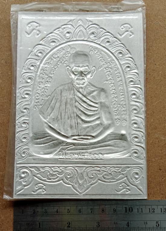 แผ่นปั๊ม หลวงพ่อเกษม ขนาด 11 X 17 ซม เนื้อแป๊ะตั๋งผสมเงิน ตอกโค้ด อยู่ในซองเดิมๆ ตามรูปครับ
