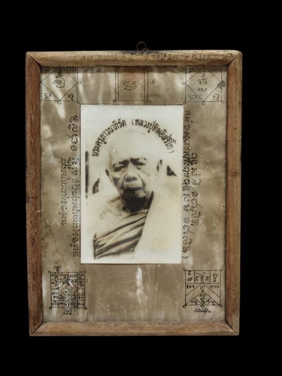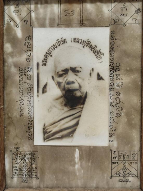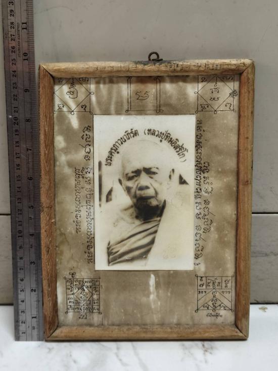 A131.รูปถ่ายเก่า หลวงปู่ทิม วัดละหารไร่ บนกระดาษยันต์เก่ามาก เก่าปรอทขึ้นเลยครับ เคาะเดียวเเดง