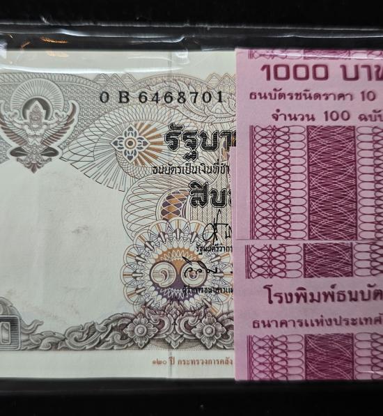 ธนบัตร แบงค์ 10 หลังช้าง ที่ระลึก 120 ปี หนึ่งแหนบ 100 ฉบับ สวย ขาว