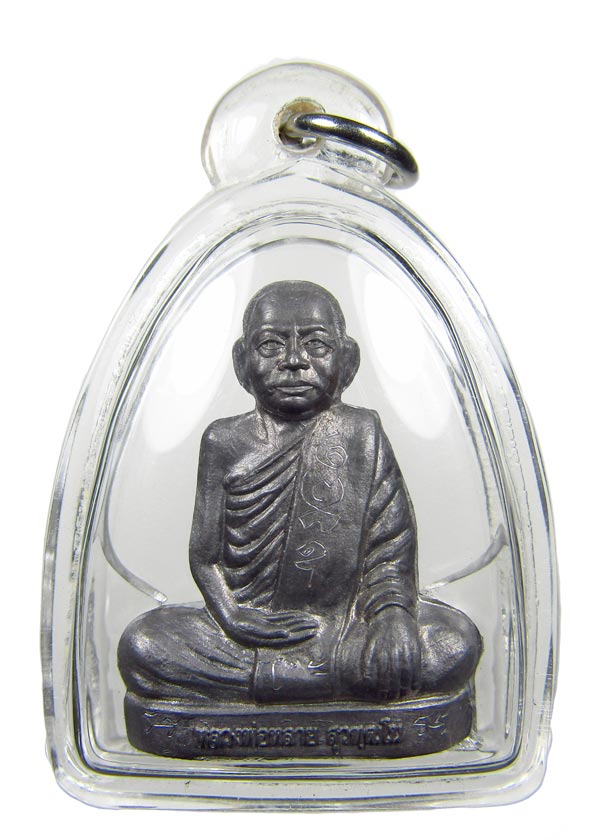 รูปเหมือนปั้ม เพชรกลับ รุ่น 1 พระอาจารย์หลาย วัดคันลัด อ.พระประแดง จ.สมุทรปราการ / เนื้อตะกั่วก้นอุดผง / จารย์รอบองค์ / เลี่ยมพร้อมบูชา